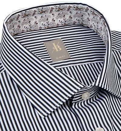 Extras: Ärmeluntertrittskante mit Kontrastmaterial eingefasst, Innerer Kragensteg aus Kontrastmaterial, Mit Kragenstäbchen, Untertritt der Knopfleiste mit Kontrastmaterial eingefasst