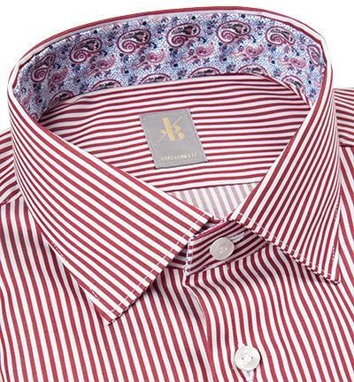 Extras: Ärmeluntertrittskante mit Kontrastmaterial eingefasst, Innerer Kragensteg aus Kontrastmaterial, Mit Kragenstäbchen, Untertritt der Knopfleiste mit Kontrastmaterial eingefasst