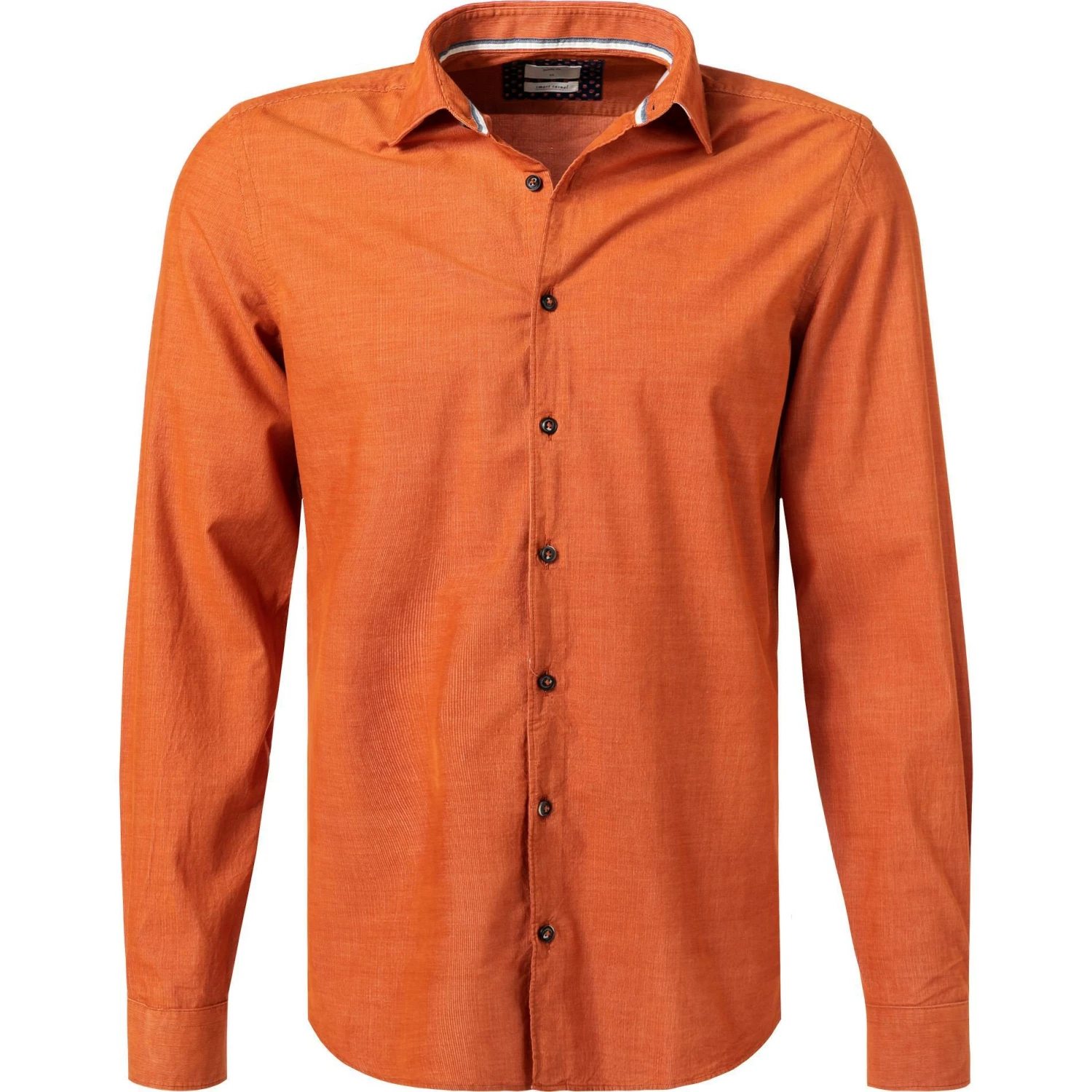 Dieses Hemd mit lässiger Austrahlung ist aus Feincord mit gewollten Farbdifferenzen gefertigt. Körpernah geschnitten wird die schlanke Silhouette betont. Ein schmales Kontrastband am inneren Kragensteg setzt einen modernen Akzent.