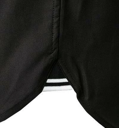 Extras: Saum mit Keileinsatz in der Seitennaht, Untertritt der Knopfleiste mit Kontrastmaterial eingefasst