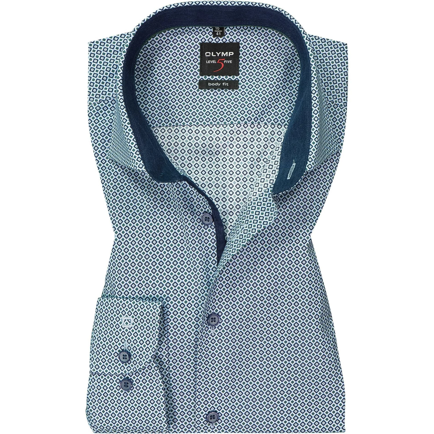 Brandneu 😍 OLYMP Level Five Body Fit 2098/84/45 Hemd, Baumwolle, Blau gemustert , Grün ⭐