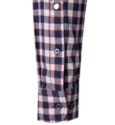 Extras: Ärmeluntertrittskante mit Kontrastmaterial eingefasst, Innere Manschette aus Kontrastmaterial, Innerer Kragensteg aus Kontrastmaterial, Kragensteg aus Kontrastmaterial, Saum mit Keileinsatz in der Seitennaht, Untertritt der Knopfleiste mit Kontrastmaterial eingefasst