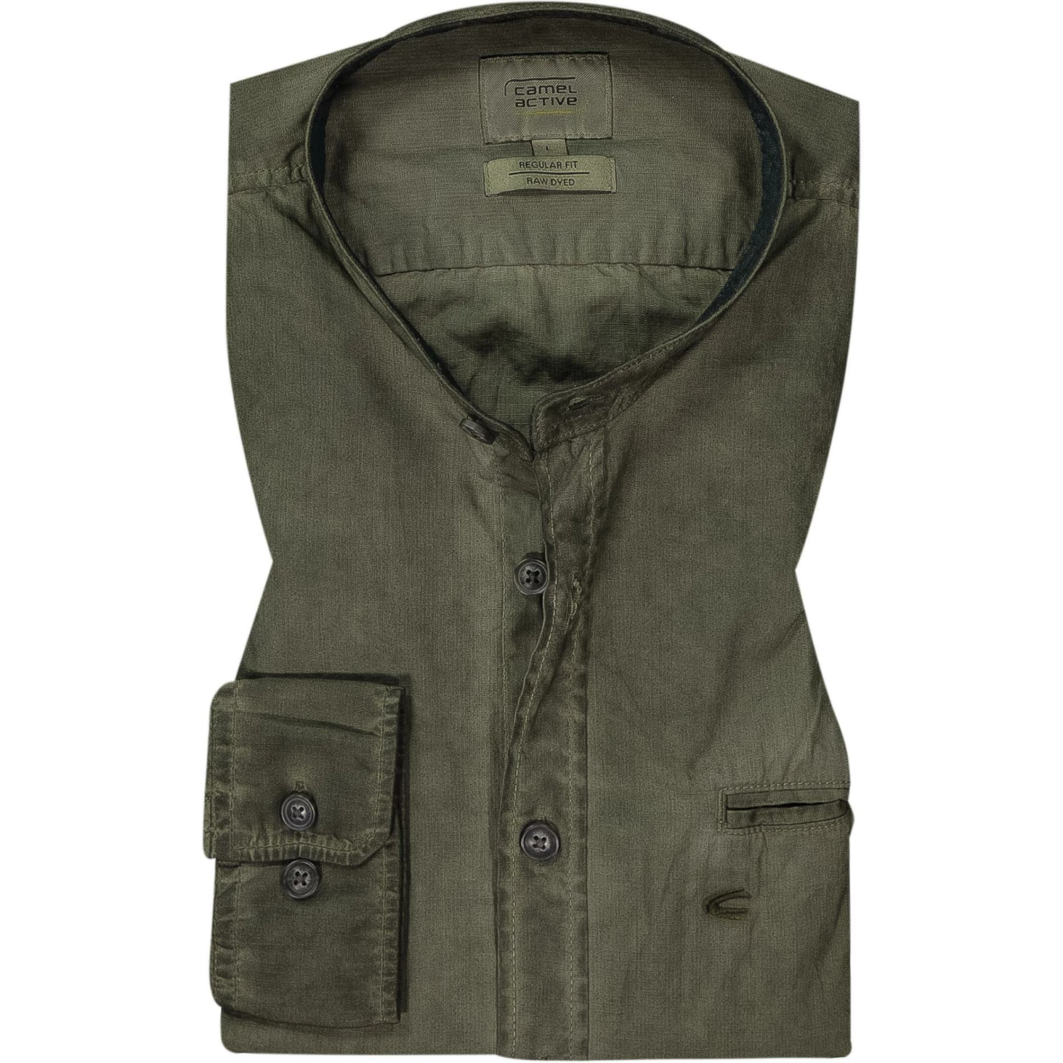 Dieses Hemd ist ein legerer Styling Begleiter, der sich durch einen Stehkragen sowie einer Paspeltasche auf der Brust auszeichnet. Ein spezielles Färbeverfahren sorgt zudem für einen einzigartigen Used-Look.