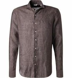 Bestes Angebot ⭐ Stenströms Hemd 675221/7970/280 Fitted Body, Reines Leinen, Braun meliert, Braun ✔️