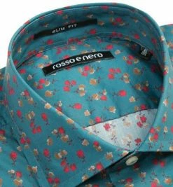 Bester Verkauf ⭐ rosso e nero Hemd Slim Line 1814/03 Slim Fit, Popeline, Türkis gemustert, Multicolor 😀