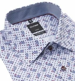 Blitzangebot ⭐ OLYMP Luxor Modern Fit 1256/44/39 Hemd, Baumwolle, Weiß-marine gemustert, Dunkelrot 🤩