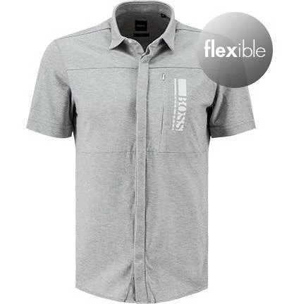 Dieses Hemd präsentiert sich im modischen Design mit einer verdeckten Druckknopfleiste. Die super weiche Stretch Qualität aus reiner Baumwolle mit feiner Piquéstruktur sorgt für angenehmen Tragekomfort und optimale Bewegungsfreiheit. Ein Logo Print und eine Reißverschlusstasche auf der Brust, eine weitere hinten mit einer individuell designten Rückseite verleihen dem Modell einen außergewöhnlichen Charakter.