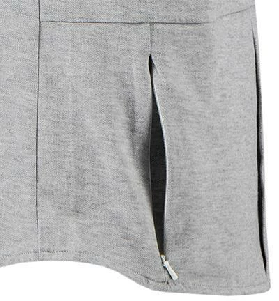 Vorderteil: Kentkragen, Verdeckte Knopfleiste, Druckknöpfe, Mit Tasche/n auf der linken Brust, hinten am Saum, beide mit Reißverschluss